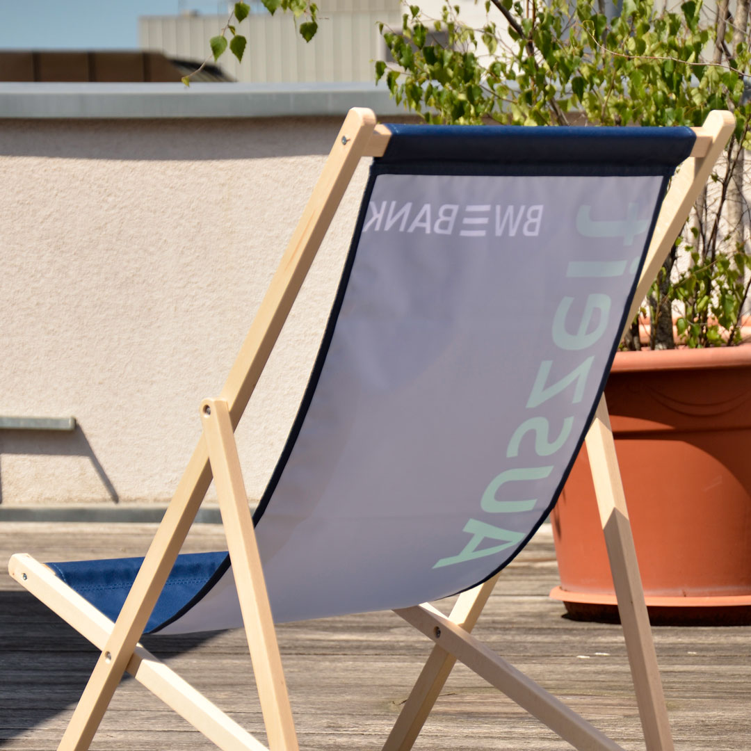 Ob Logo, Design oder vollflächiges Motiv: Alle Produkte in dieser Kategorie können nach Wunsch personalisiert werden. Der hochwertige Druck sorgt für eine brillante Farbwiedergabe und macht jeden Liegestuhl oder Hocker zu einem wirkungsvollen Branding-Element, das Aufmerksamkeit garantiert.