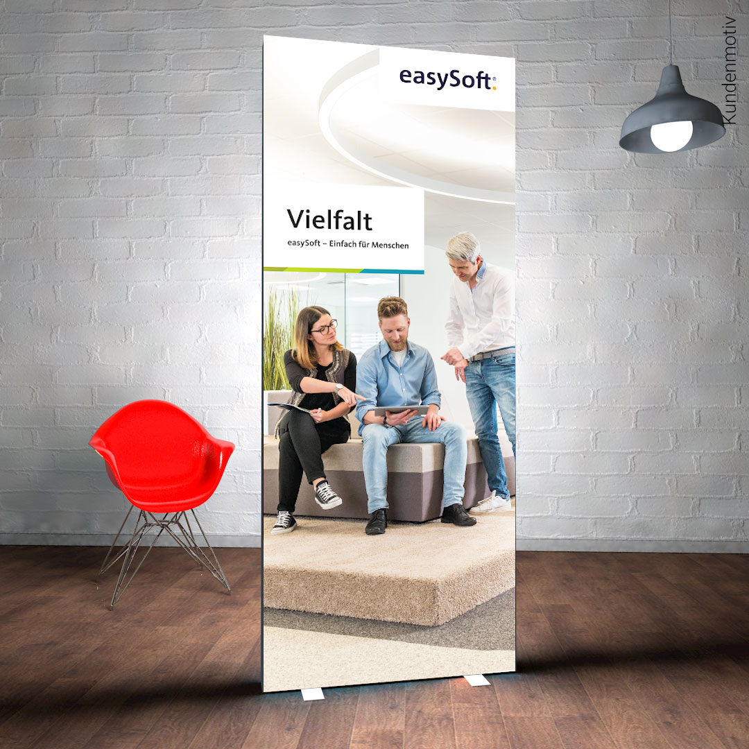 Wir layouten das Banner nach Ihren Vorgaben und schicken Ihnen den Entwurf dann zur Freigabe zu. Nach Ihrer Druckfreigabe startet die Produktion Ihres Produkts.